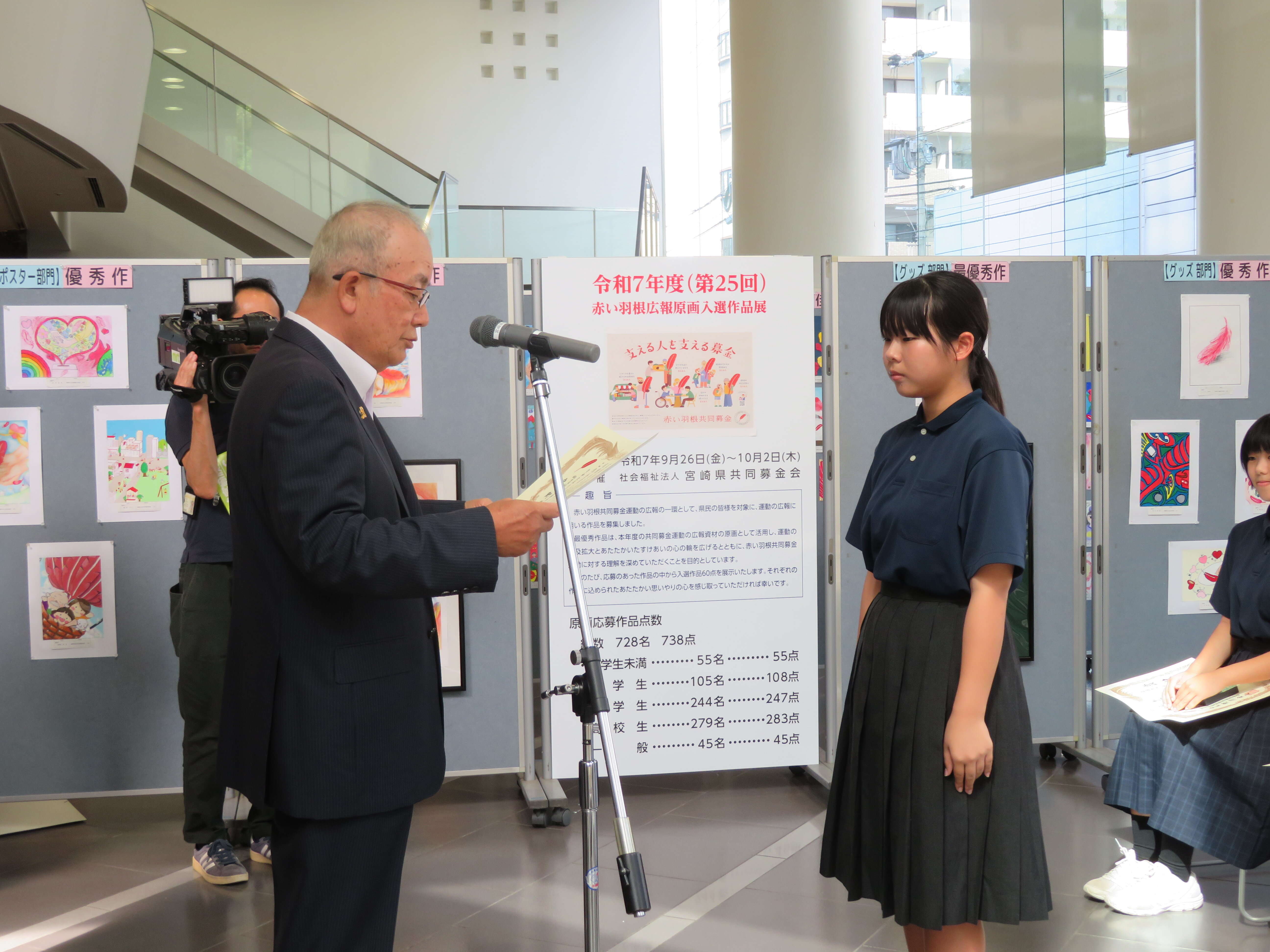 9月26日(金)に宮日会館1階イベントプラザで「令和7年度(第25回)赤い羽根広報原画表彰式」を開催しました。